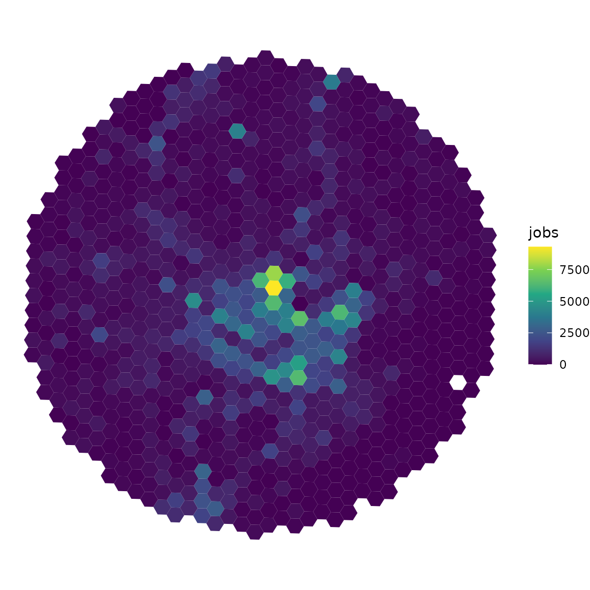 We can visualize the spatial distribution of jobs using